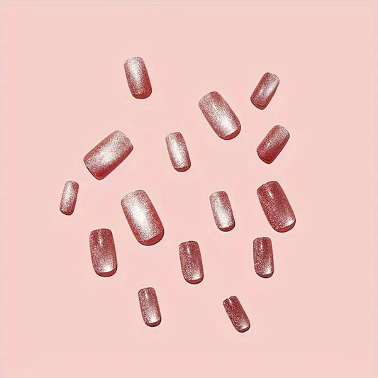Pink Cat Eye Glitter Press-On Nails 10-pieces
