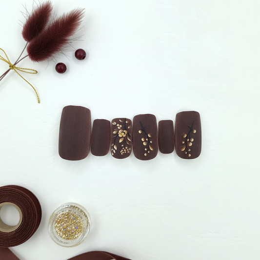 Wine Red & Golden Ripple Nail Strips 10-pieces
